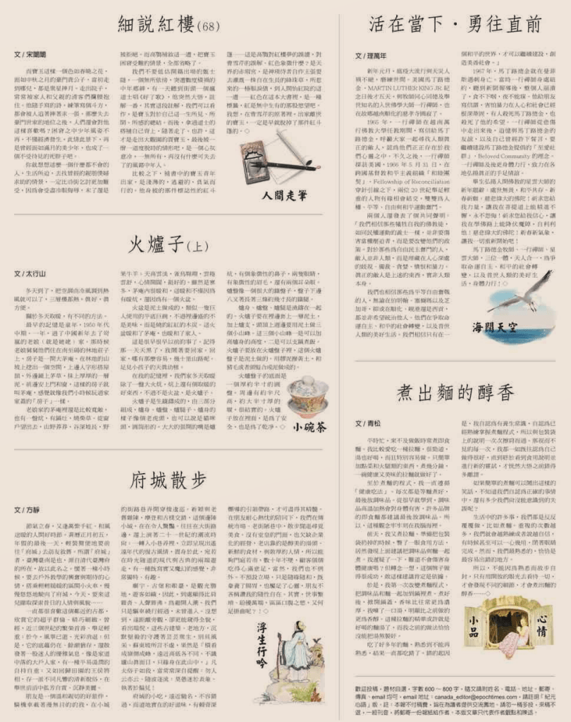家庭日應朋友邀約,驅車南下多倫多,觀賞第22屆華埠節‧Chinatown Festival以中國神話「八仙」為主題的慶祝活動。從上午11時到晚間8時的節目表,列出了文化展示、活動和「八仙」巡遊;還有各式各樣街邊小吃攤檔,推出大江南北的美食佳餚。