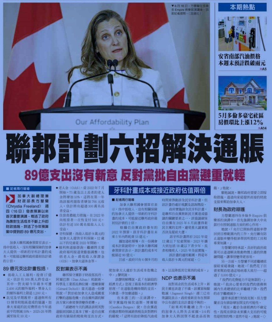 杜甫‧茅屋為秋風所破歌〉:安得廣廈千萬間,大庇天下寒士俱歡顏,風雨不動安如山。楓葉國房地產價格飛漲,聯邦政府無所作為,更兼濫用庫藏,借債度日,安居樂業,談何容易?國庫不但空虛,還出了個黑洞,說甚麼行公義講誠信求和諧?