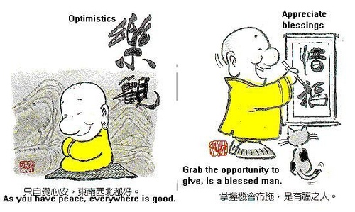 巧合的是,一家人在同一個月份又參加了萬錦巿內植樹萬株的活動。期間碰到個佛教組織團體,結了緣;事後更接受邀請到寺院參觀探訪。在探訪過程中,偷窺了正在上課的禪坐班,看見學員都是雙手合什,靜靜地坐在椅子或地面的蒲團上,跟先前提及的靜坐沒有甚麼兩樣。