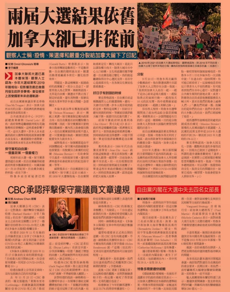 這多災多難的一年還有近百日才過去,與其說是天災頻仍,不如說是人禍不絕。為了實現黨國頭領「復興祖國」的「中國夢」,武漢肺炎‧COVID-19荼毒生靈無數。環球極權獨裁專制政府,乃至於標榜公平、正義、民主、自由、人權和法治等等普世價值國度,全體趁火打劫、渾水摸魚。借防疫、抗疫、治療之名,違反憲法,侵犯人權,鞏固權位,膨脹政府規模,增加僱員,操縱國民。又強制國民接種副作用未明疫苗,謀財害命。加拿大聯邦自由黨少數政府舉措尤其出眾,在自由世界普遍接受與病毒共存的當兒,總理仍然強調疫情相當嚴重。然而在國際與國內強烈批評之下,為取得政治利益才宣布10月1日起撤銷種種防疫通行禁令。